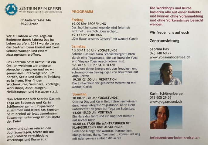 interessantes Jubiläums- und Fusionsprogramm mit Yoga, Meditation, Vorträgen, Bauchtanz …