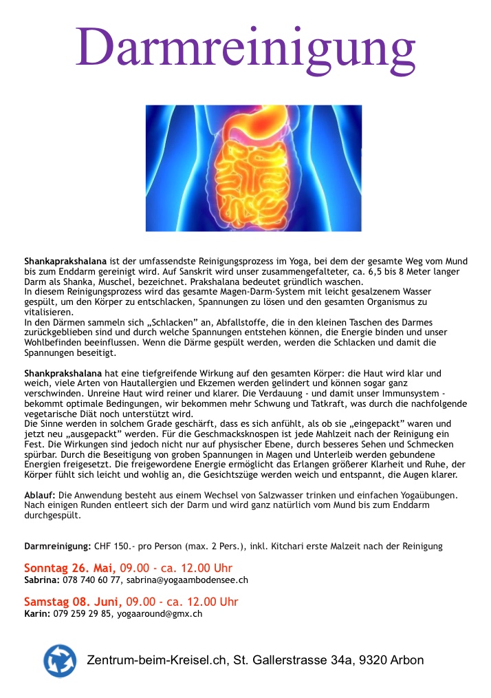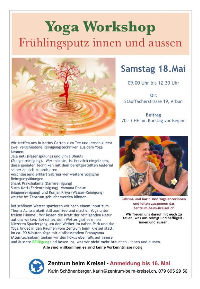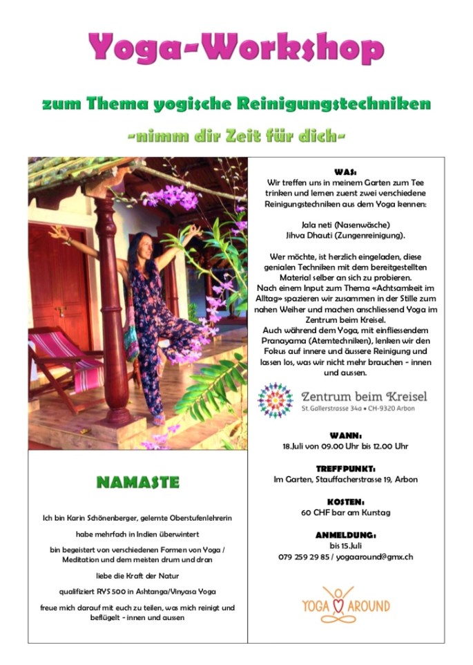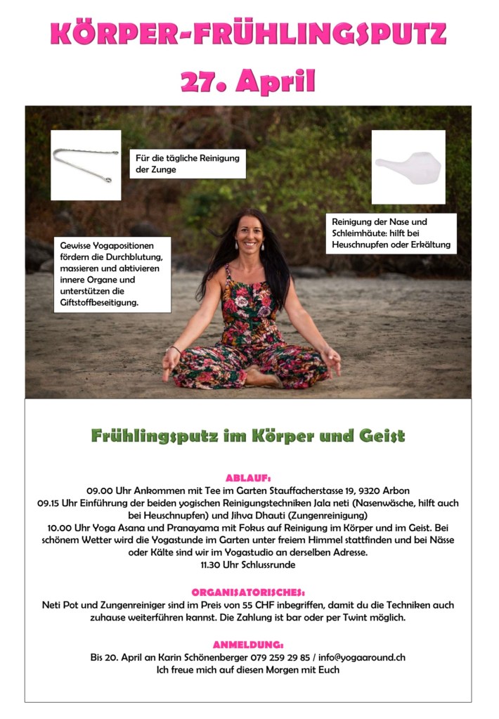 | 27.April | Körper-Frühlingsputz Yoga und Reinigungstechniken | Yoga Around Studio Arbon und Garten |