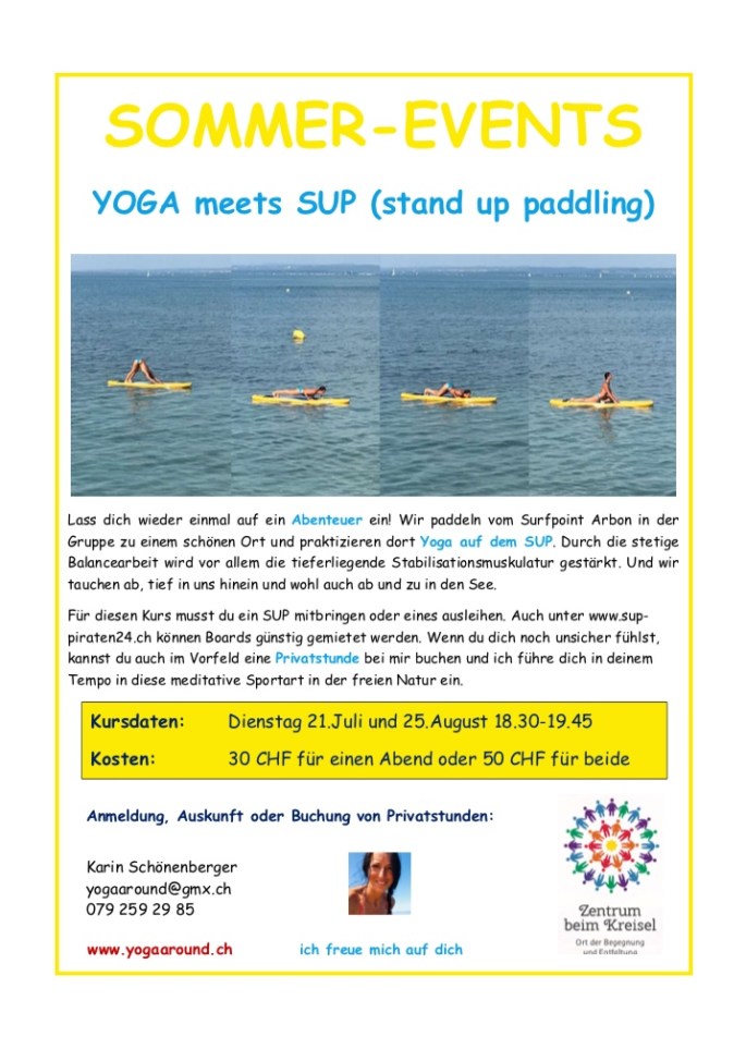 | 8.Juni | Yoga auf dem SUP (Stand Up Paddle) | Strandbad Arbon |