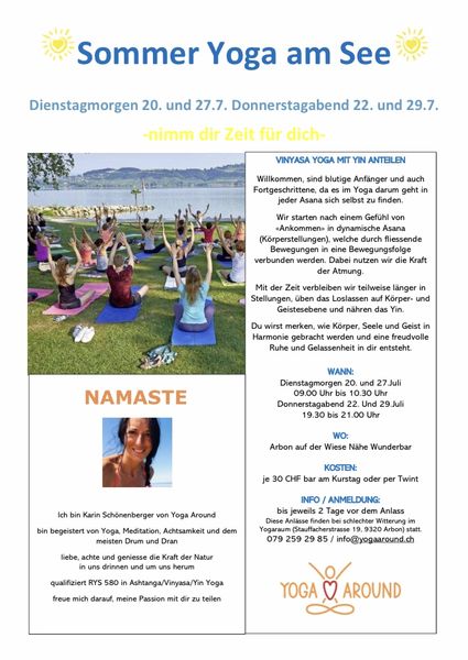 | 1.Juli | Yoga am See (offene Yogastunde für alle) | Seewiese in der Nähe Saurer Museum, Arbon |