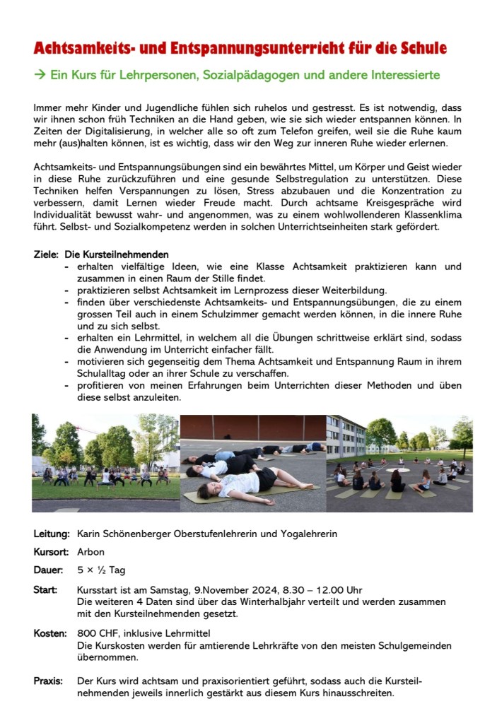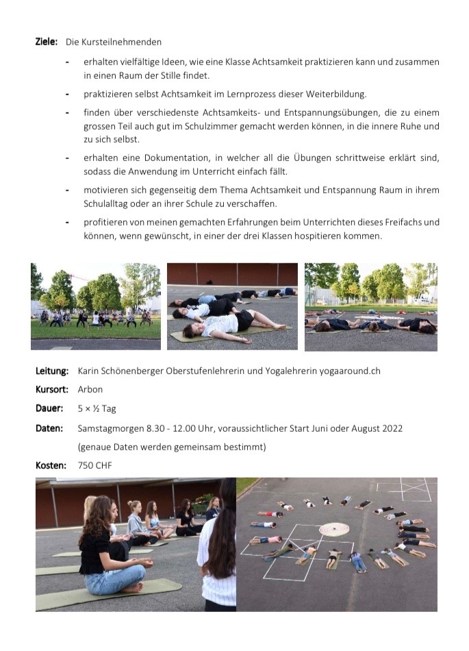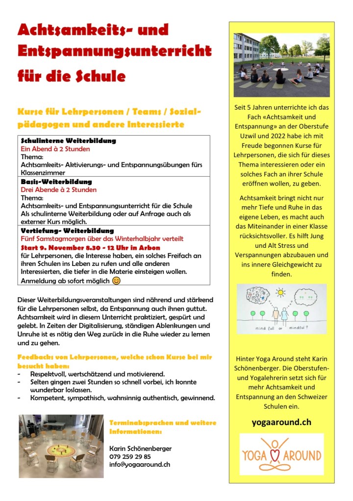 | 25.März | Achtsamkeit und Entspannungsunterricht für die Schule Lehrer-Weiterbildung | Yoga Around Studio Arbon |