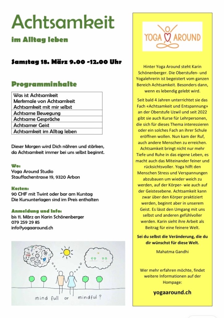 | 6.Mai | Achtsamkeit im Alltag leben | Yoga Around Studio Arbon |