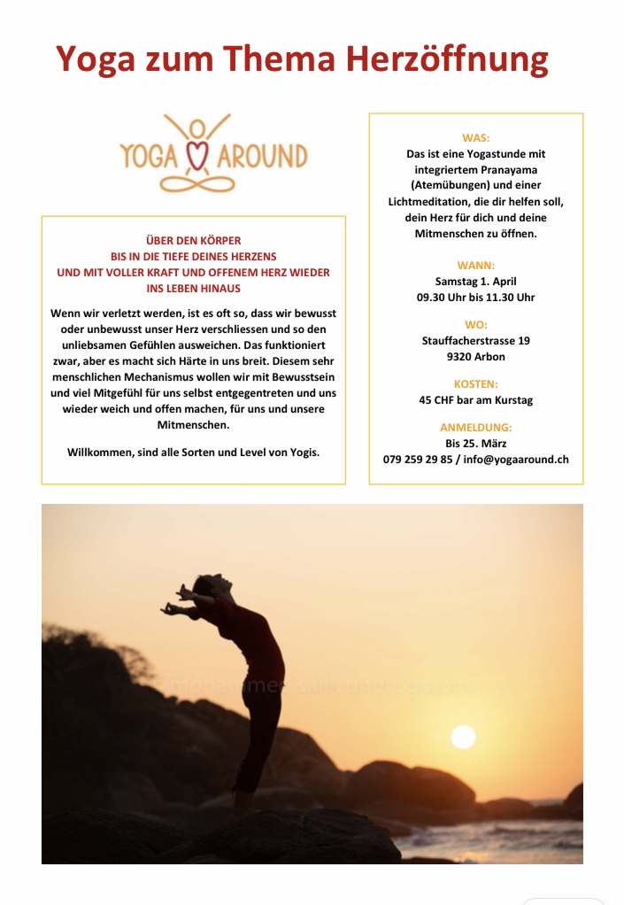 | 1.April | Yoga zum Thema Herzöffnung | Yoga Around Studio Arbon |